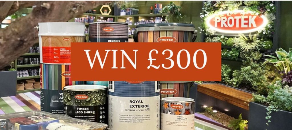*The prize is a selection of Protek products to the value of £300 – the winner will be able to choose product from across our range including Wood Preserver ++, ESP End Seal, Paint & Accessories.